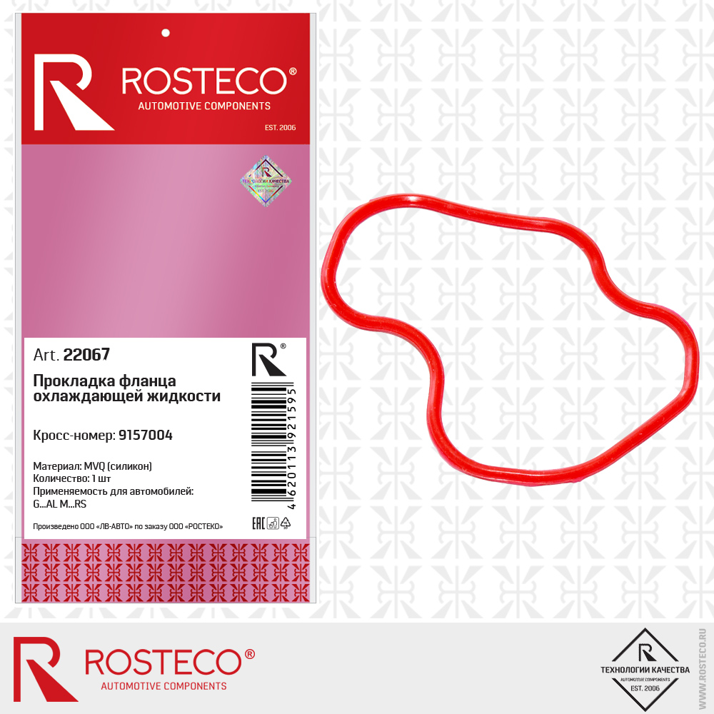 22067 ROSTECO Прокладка фланца охлаждающей жидкости MVQ силикон d=1,8