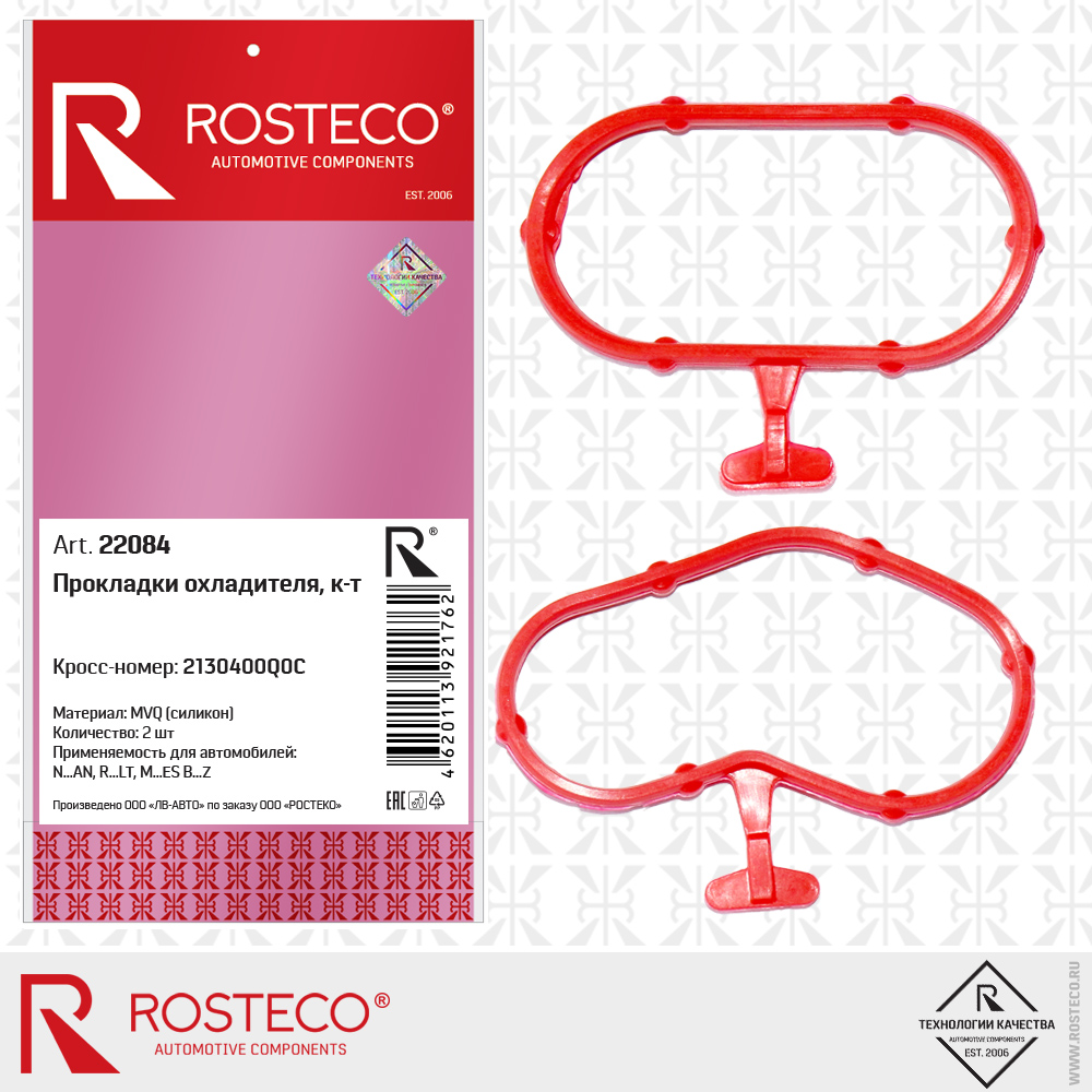 22084 ROSTECO Прокладки охладителя 2 шт MVQ силикон