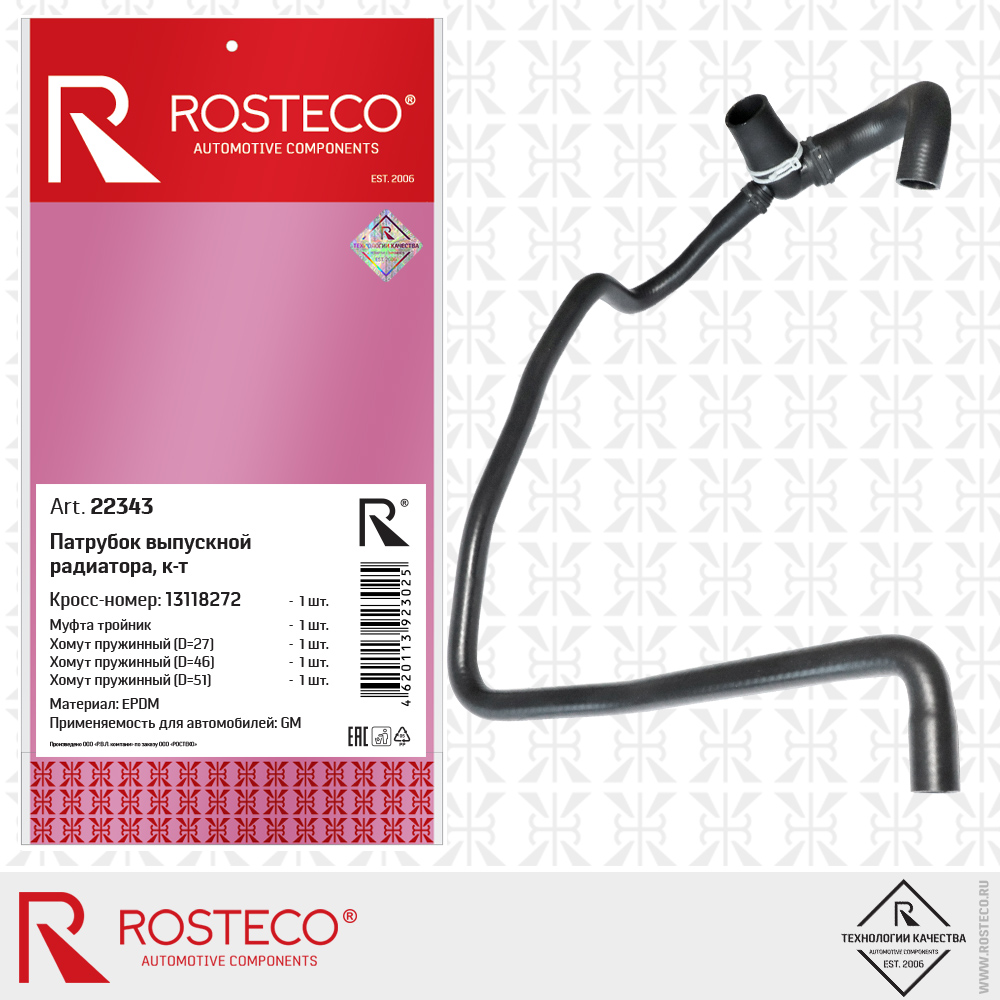22343 ROSTECO Патрубок радиатора выпускной EPDM