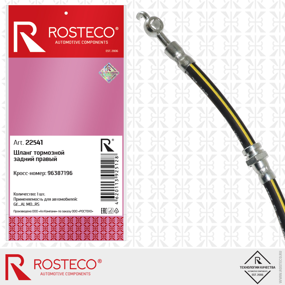 22541 ROSTECO Шланг тормозной задний правый (45,5 см)