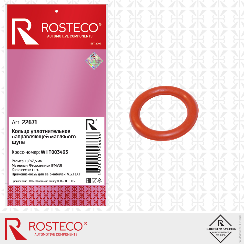 22671 ROSTECO Кольцо 11,8х16,8x2,5 уплотнительное направляющей масляного щупа VAG, FMVQ 22671