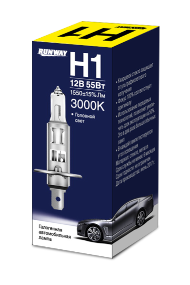 RW-H1 RUNWAY ГАЛОГЕННАЯ АВТОМОБИЛЬНАЯ ЛАМПА H1 12В 55ВТ