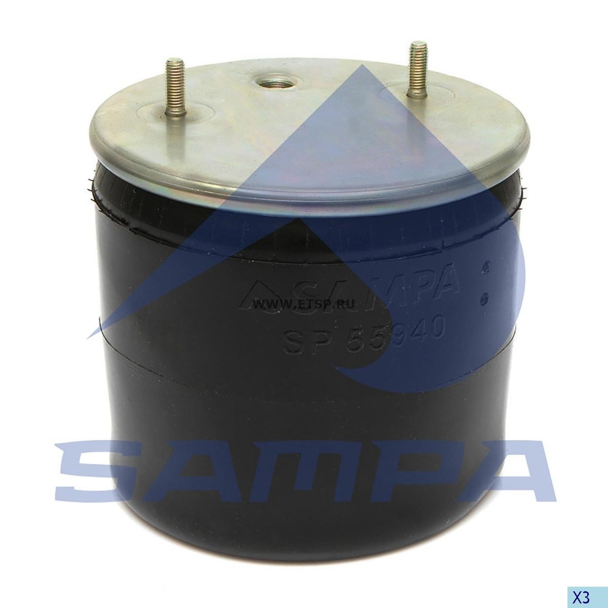 SP 55940-K SAMPA Пневморессора BPW (металлический стакан) (2 шп. M12 смещены,1 отв. штуц. M22х1.5