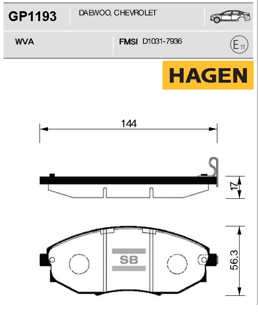 GP1193 SANGSIN Колодки тормозные CHEVROLET Epica передние (4шт.) HAGEN SANGSIN