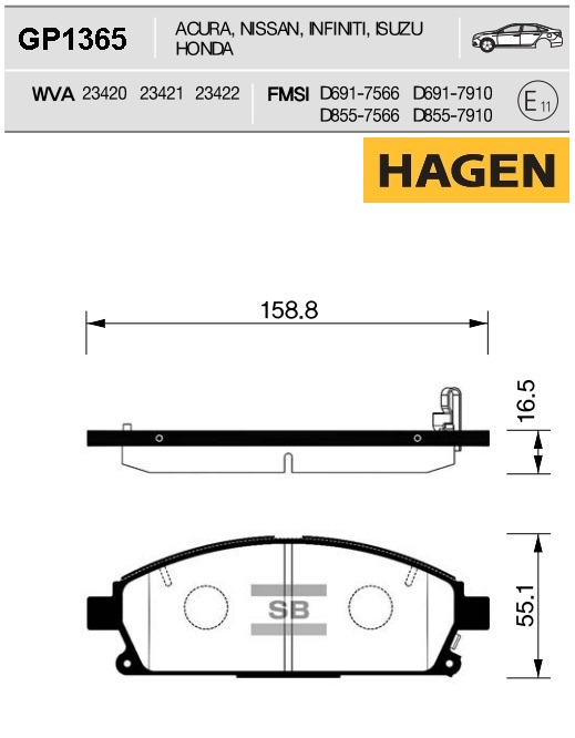 GP1365 SANGSIN Колодки передние ACURA MDX 01-05, NISSAN ELGRAND 95-10, X-TRAL T30 GP1365