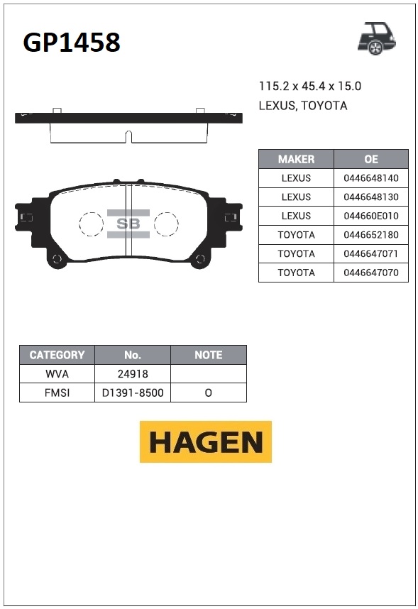 GP1458 SANGSIN Колодки тормозные LEXUS RX270,RX350 задние (4шт.) SANGSIN