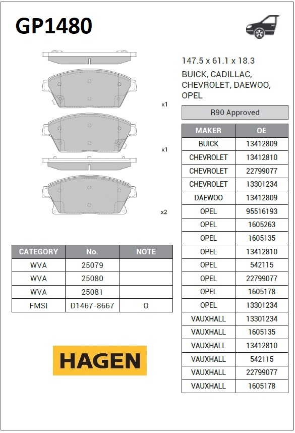 | Наименование | Колодки тормозные CHEVROLET Cruze (09-),Orlando (11-) OPEL Astra J перед (4шт.) |