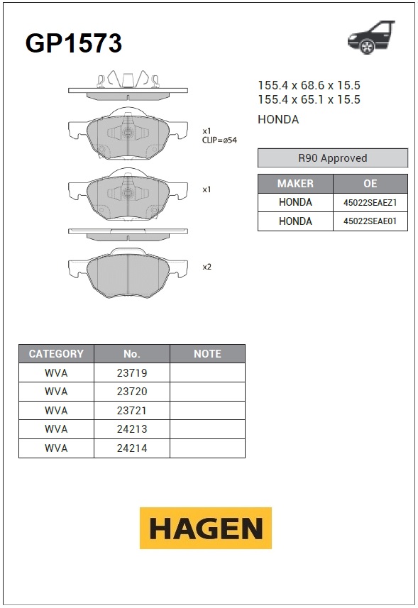 | Наименование | Колодки передние HONDA ACCORD VII 03-08 GP1573 |