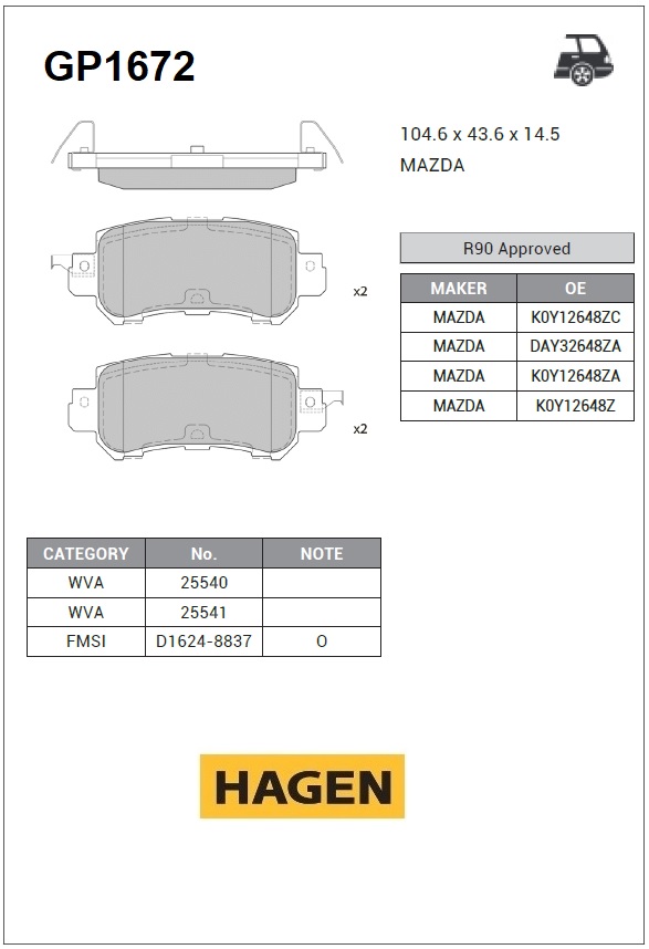 | Наименование | Колодки задние MAZDA CX-3, CX-5 GP1672 |