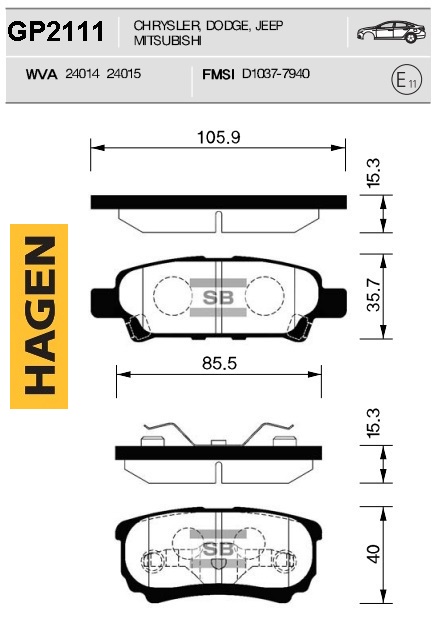 GP2111 SANGSIN Колодки тормозные MITSUBISHI Lancer (08-) задние (4шт.) HAGEN SANGSIN