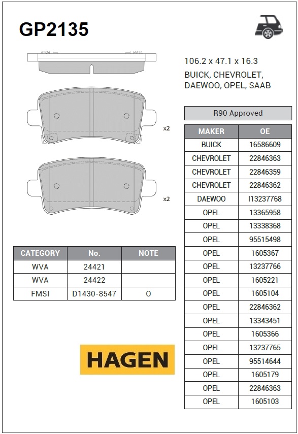 | Наименование | Колодки задние OPEL INSIGNIA 08- GP2135 |