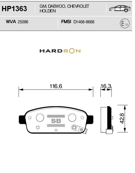 HP1363 SANGSIN Колодки тормозные CHEVROLET Cruze (09-) задние (4шт.) HARDRON SANGSIN