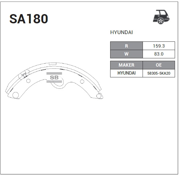 SA180 SANGSIN Колодки тормозные HYUNDAI HD65,72,78,County барабанные (85мм) (1шт.) SANGSIN