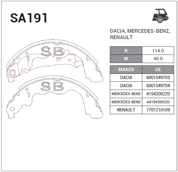 SA191 SANGSIN Колодки тормозные бар. LADA LARGUS/RENAULT LOGAN/SANDERO/DUSTER (228x42) SA191