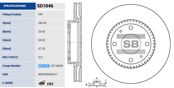 SD1046 SANGSIN Диск тормозной HYUNDAI Sonata (01-),Elantra (00-) KIA Magentis (R15) передний (1