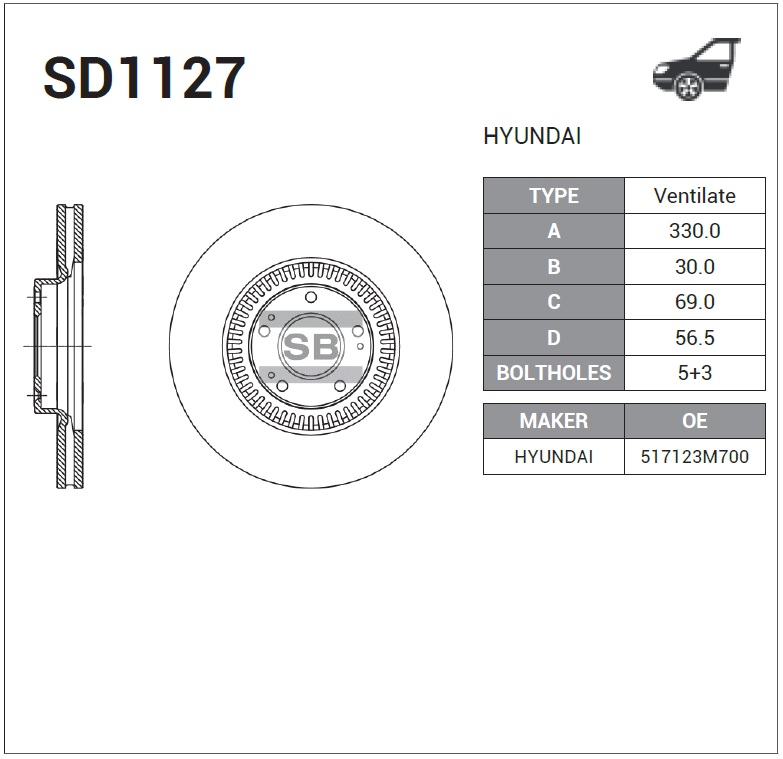 SD1127 SANGSIN Диск тормозной HYUNDAI Equus (09-) (3.8) передний (1шт.) SANGSIN