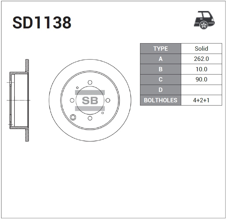 | Наименование | Диск тормозной Mitsubishi Galant 2.0-2.5D 91-04 SD1138 |