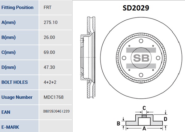 | Наименование | Диск тормозной передний KIA CERATO SD2029 |
