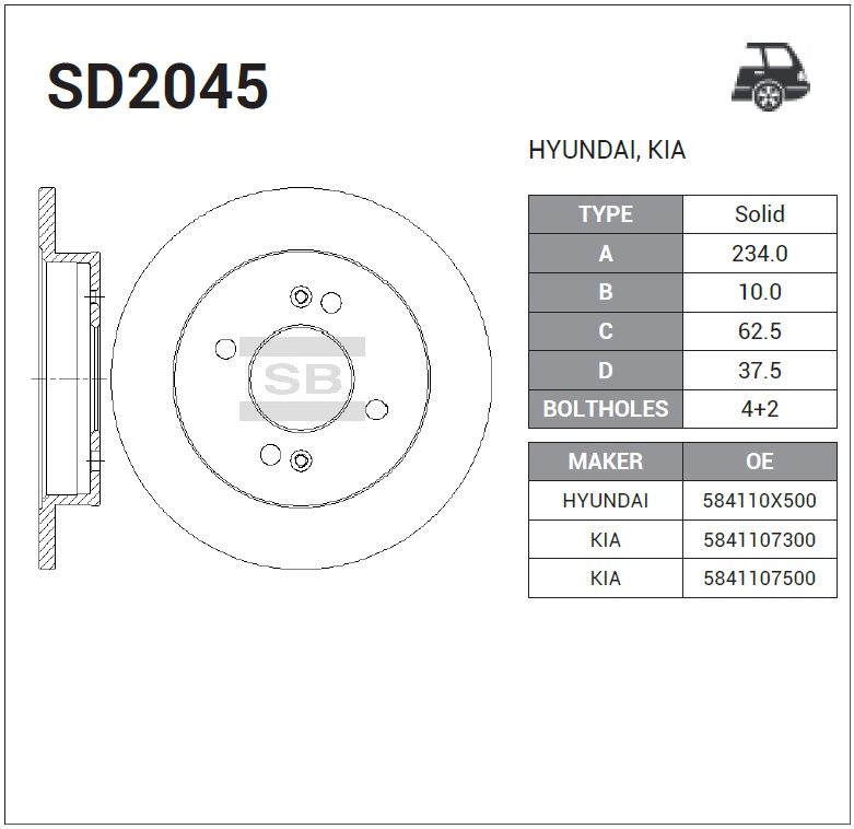 SD2045 SANGSIN Диск тормозной KIA Picanto (04-) задний (1шт.) SANGSIN