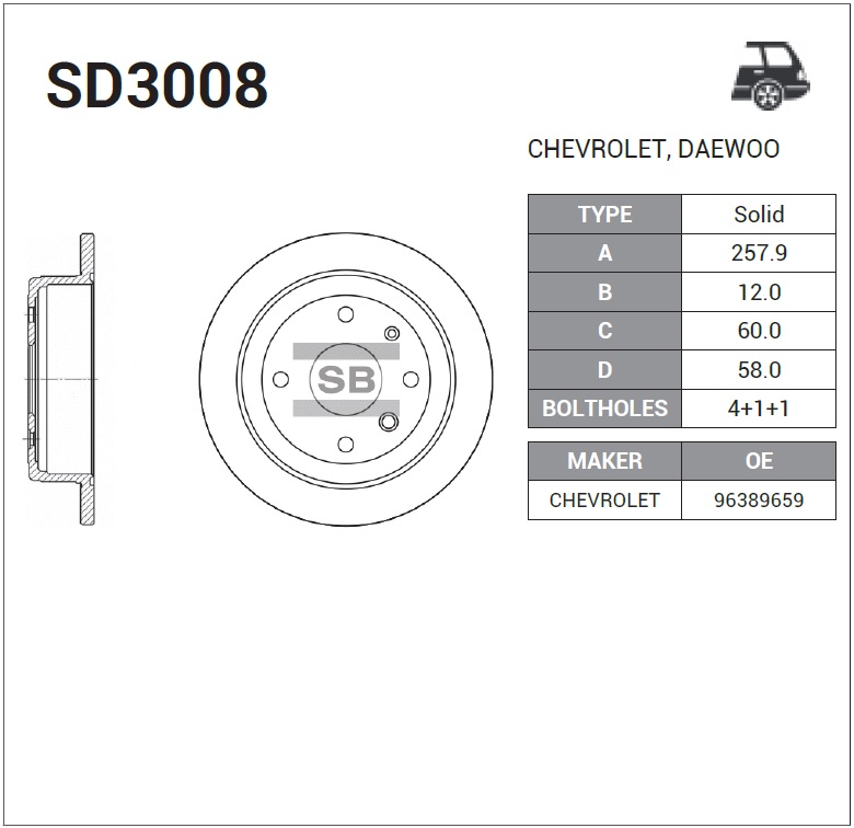 SD3008 SANGSIN Диск тормозной CHEVROLET Epica (05-11) задний (1шт.) SANGSIN