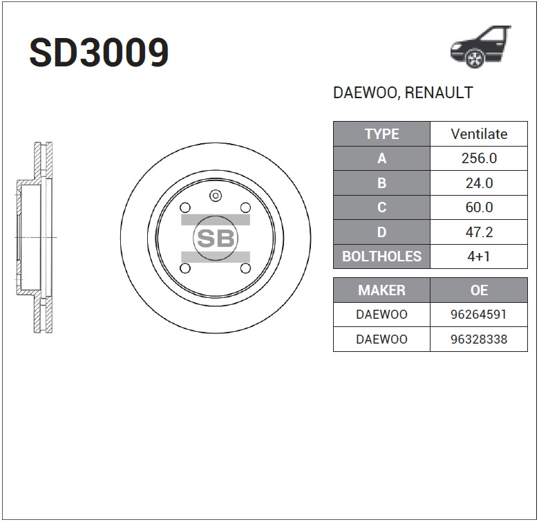 SD3009 SANGSIN Диск тормозной CHEVROLET Epica (03-) (2.0) передний (1шт.) SANGSIN