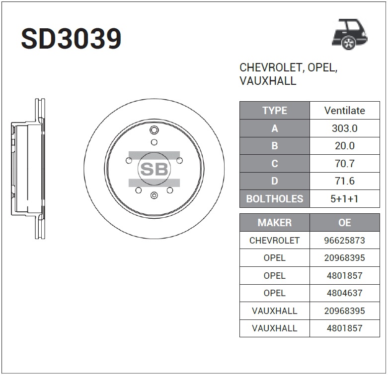 SD3039 SANGSIN Диск тормозной CHEVROLET CAPTIVA/OPEL ANTARA 06- задний вент.D 303мм. SD3039