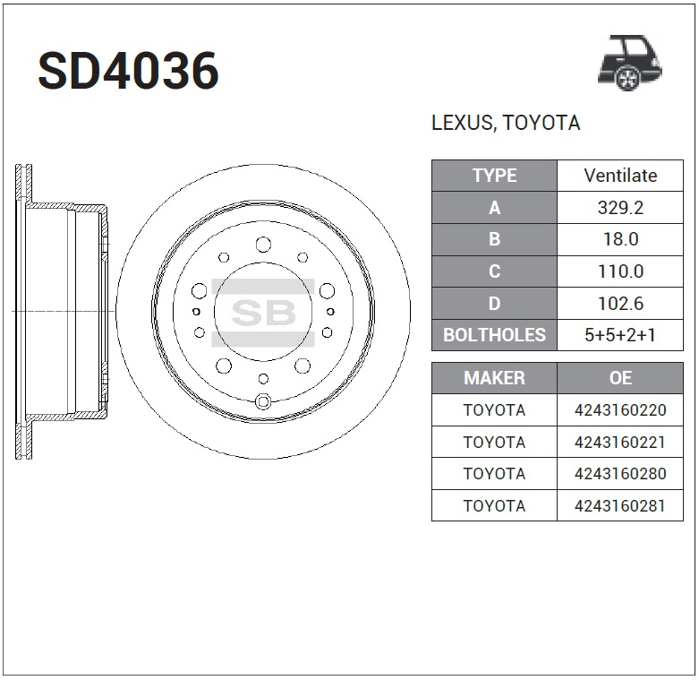 | Наименование | Диск тормозной задний LEXUS LX470, TOYOTA LAND CRUISER 100 SD4036 |