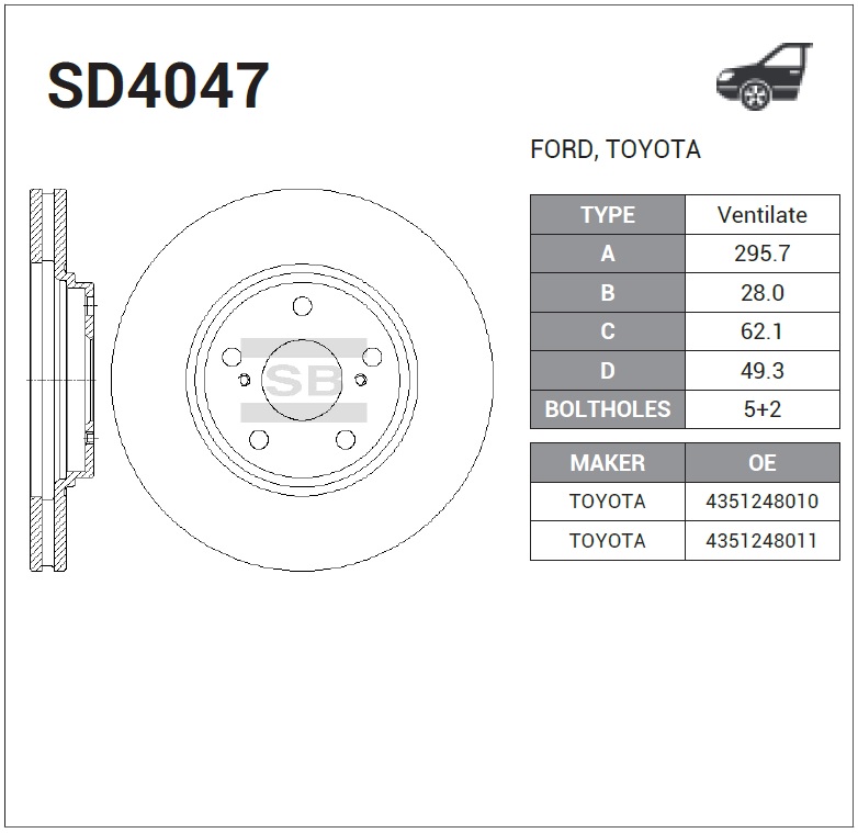 | Наименование | Диск тормозной передний Toyota Camry SD4047 |