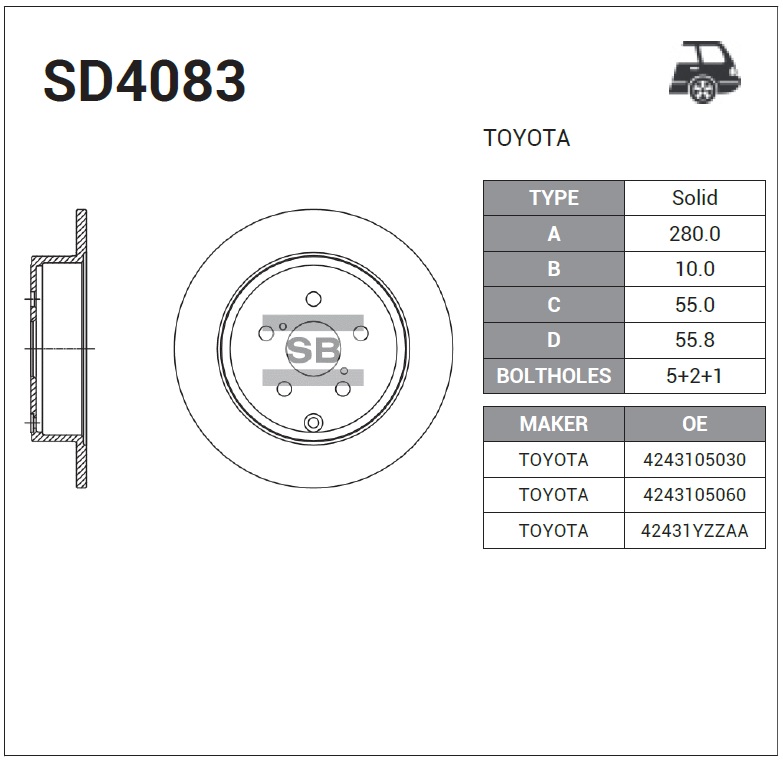SD4083 SANGSIN Диск тормозной TOYOTA Avensis (03-08) задний (1шт.) SANGSIN
