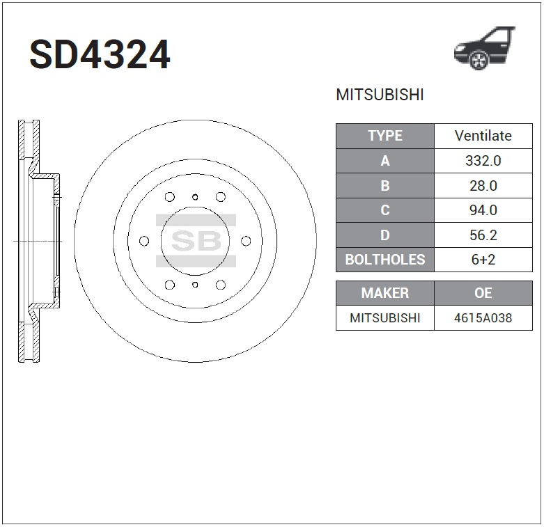 | Наименование | Диск тормозной передний MITSUBISHI PAJERO IV SD4324 |