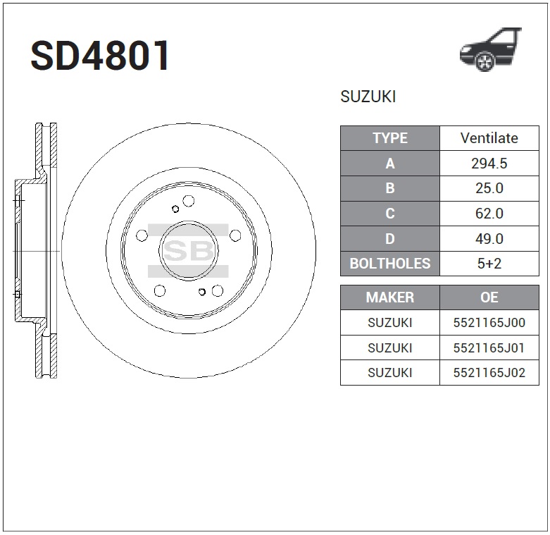 | Наименование | Диск тормозной SUZUKI GRAND VITARA 05- передний вент. SD4801 |