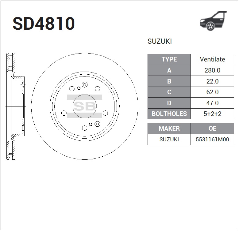 SD4810 SANGSIN Диск тормозной SUZUKI Grand Vitara (15-) передний (1шт.) SANGSIN