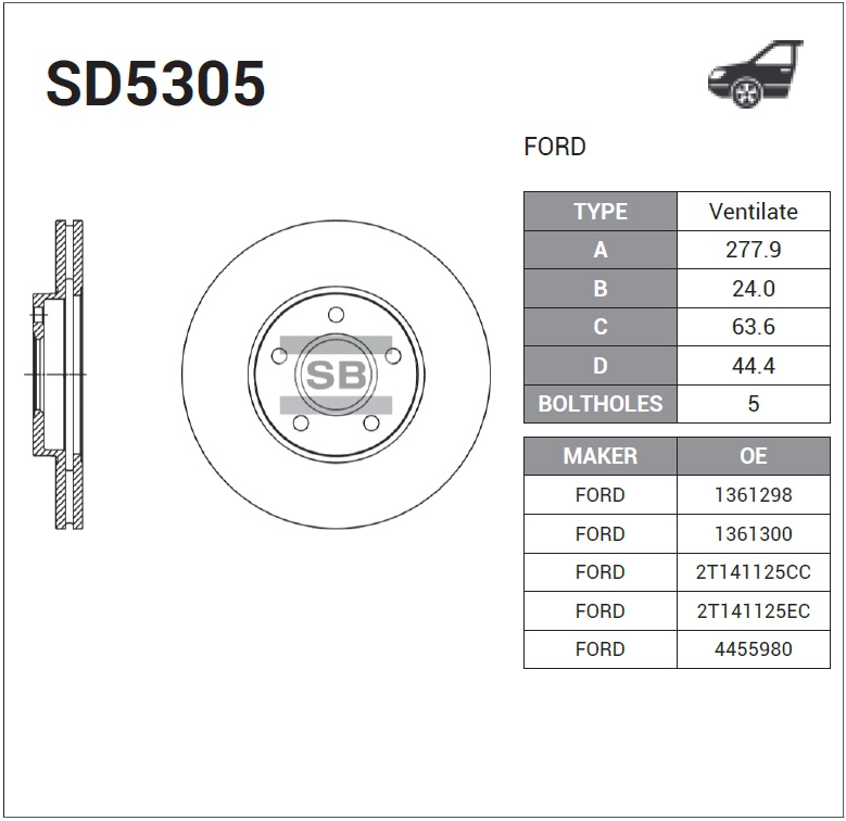 SD5305 SANGSIN Диск тормозной FORD Transit (02-) передний (1шт.) SANGSIN