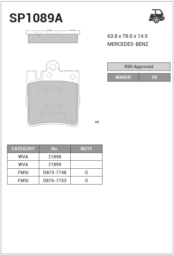 | Наименование | Колодки тормозные дисковые MB W210 2.0-3.0TD 96-02 SP1089A |