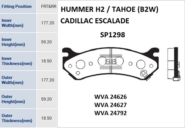 SP1298 SANGSIN Колодки тормозные CHEVROLET Tahoe (00-) передние (4шт.) SANGSIN