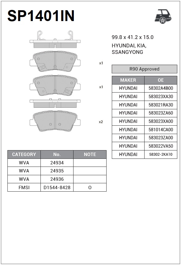 SP1401IN SANGSIN Колодки тормозные HYUNDAI i40 (11-) задние (4шт.) SANGSIN