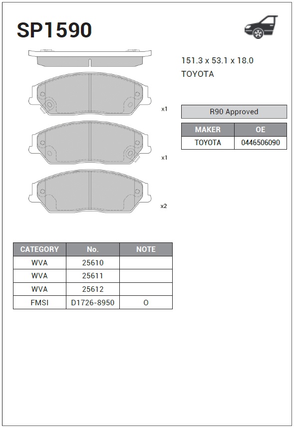 | Наименование | Колодки передние Toyota Camry 2.4/3.5 06- SP1590 |