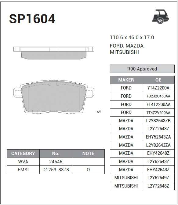| Наименование | Колодки тормозные MAZDA CX7/CX9 07- задние SP1604 |