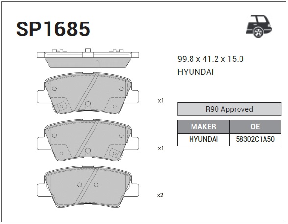 | Наименование | Колодки задние HYUNDAI SONATA (LF) R15 2014- SP1685 |