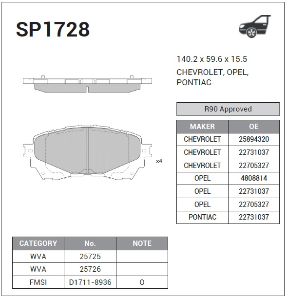 | Наименование | Колодки тормозные дисковые Mazda 6 2.0/2.2D 12 SP1728 |