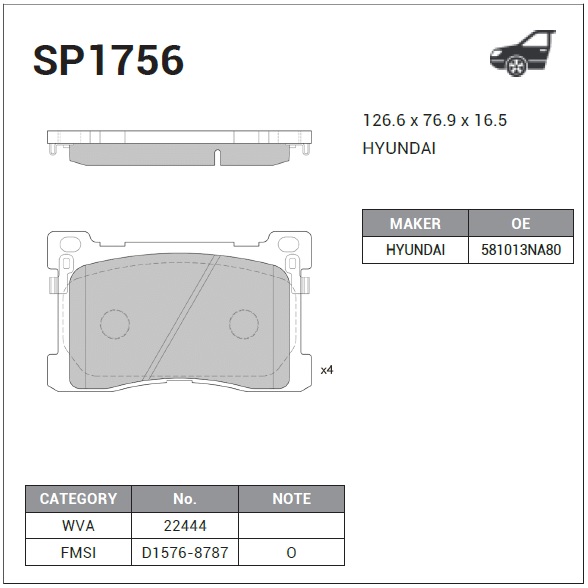SP1756 SANGSIN Колодки тормозные HYUNDAI Equus (13-) передние (4шт.) SANGSIN