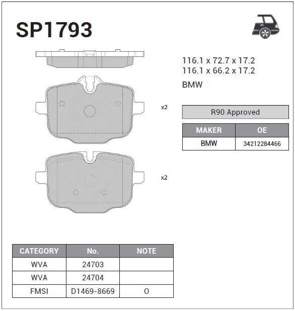 | Наименование | Колодки задние BMW M5 F10 SP1793 |