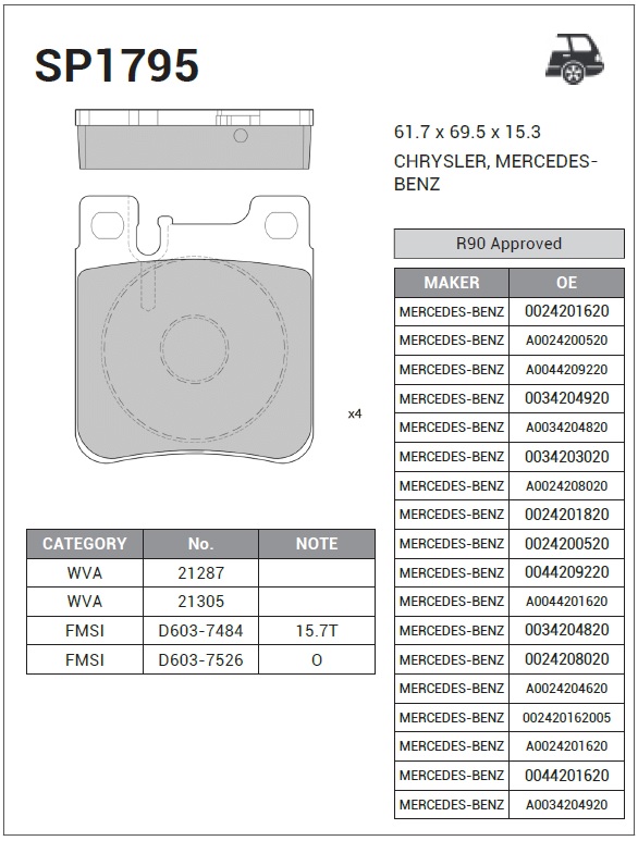 | Наименование | Колодки тормозные передние MB W140 91/W202 94/W210 97/W220 2.8/3.2 98 SP1795 |