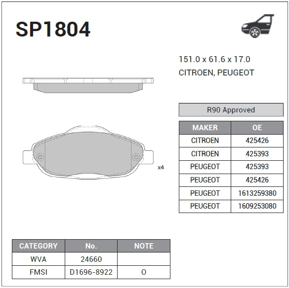 SP1804 SANGSIN Колодки тормозные PEUGEOT 308 07-/3008 09- передние SP1804