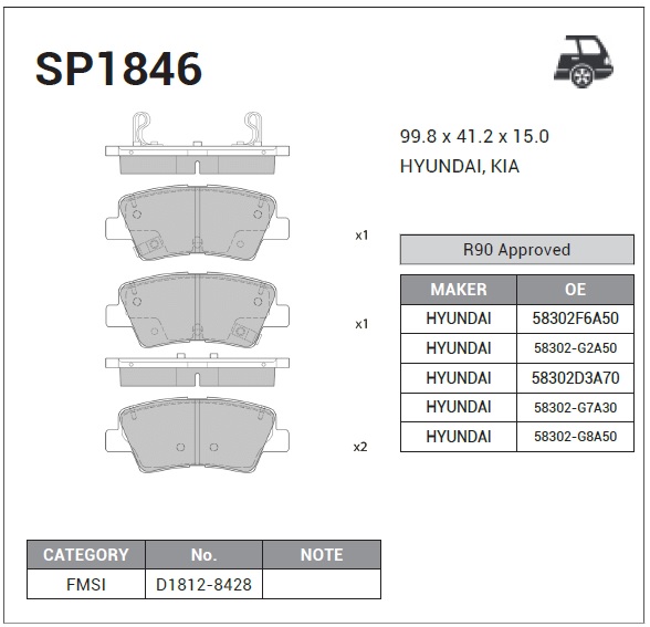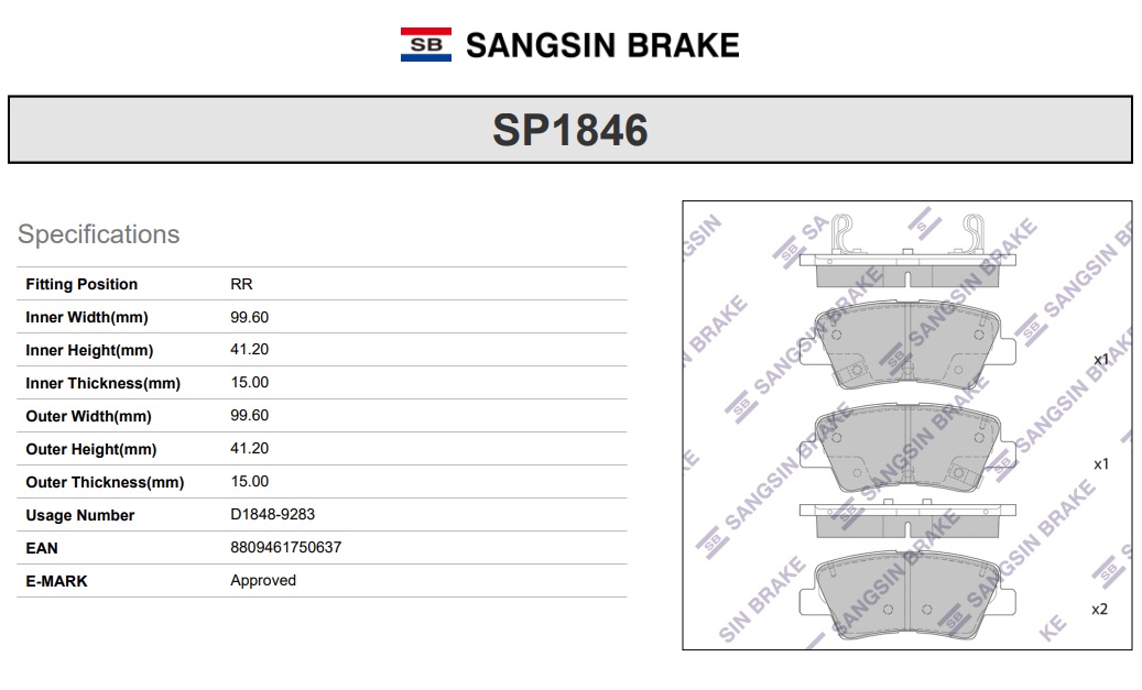 SP1846 SANGSIN Колодки тормозные HYUNDAI Tucson (16-) задние (4шт.) SANGSIN