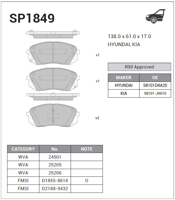 SP1849 SANGSIN Колодки тормозные KIA Soul (13-) передние (4шт.) SANGSIN