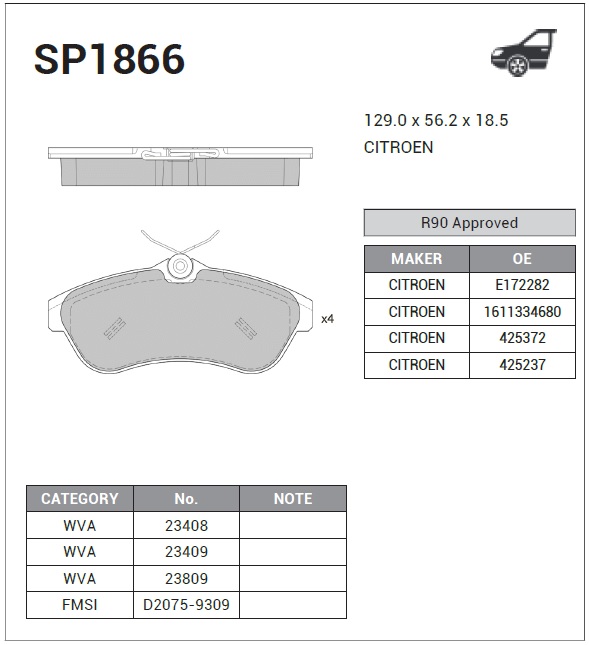 | Наименование | Колодки тормозные передние CITROEN C2/C3 I/II SP1866 |
