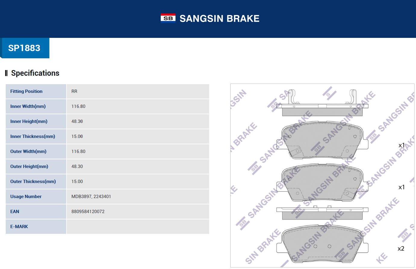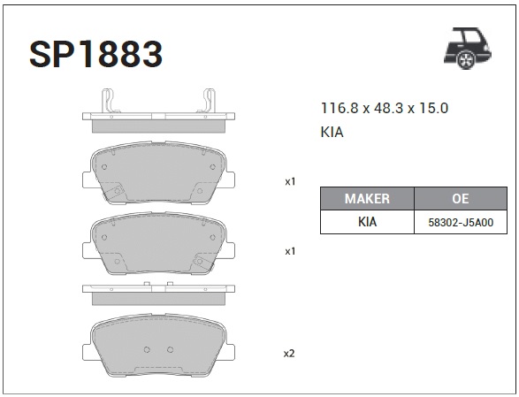 SP1883 SANGSIN Колодки тормозные HYUNDAI Santa Fe (12-) KIA Sorento (12-) задние (4шт.) SANGSIN