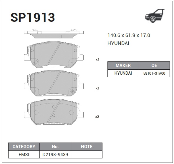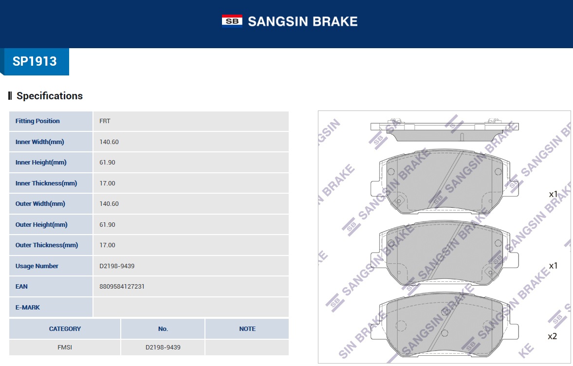 SP1913 SANGSIN Колодки тормозные HYUNDAI Santa Fe передние (4шт.) SANGSIN