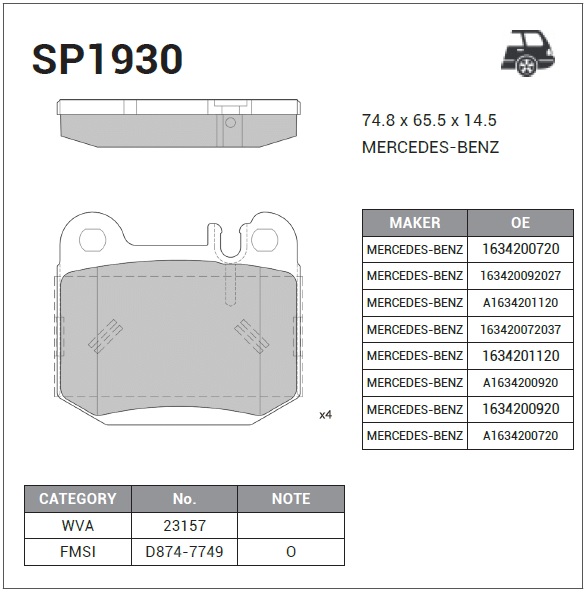 | Наименование | Колодки тормозные дисковые MB W163/55AMG 3.5-5.5/4.0CDi 98 SP1930 |